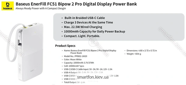 Baseus EnerFill FC51 Bipow2 Pro Power Bank 10000mAh, Киев
