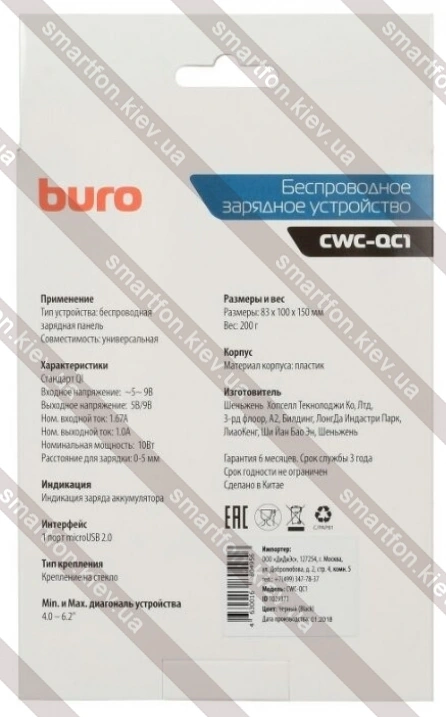 Держатель с беспроводной зарядкой Buro CWC-QC1 - купить в КиевеВесенняя скидка 2026 г.: 10%, экономия: 20 грн.