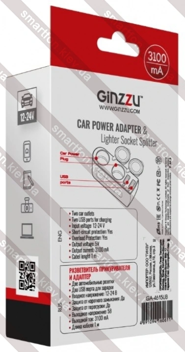 Автомобильная зарядка Ginzzu GA-4615UB - купить в КиевеВесенняя скидка 2026 г.: 10%, экономия: 20 грн.