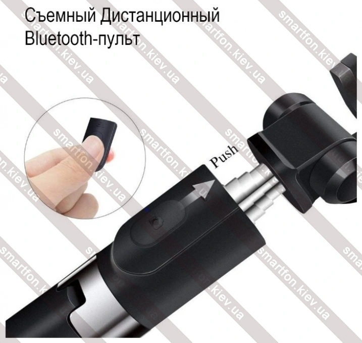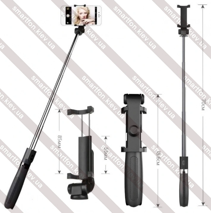 Особенности | 4 телескопические ступени с регулируемым удлинением; держатель для смартфонов шириной 55-85 мм; версия Bluetooth 4.0; расстояние до объекта съемки до 10 м; сменная батарея CR-1632 для кнопки управления |